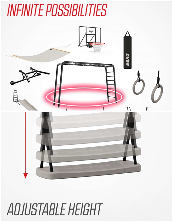 Se gosta de brincar, de desporto e relaxar com toda a família, então o BERG Play Base é ideal para si. Um conceito multifuncional único concentrado num equipamento de alta qualidade e estilo.